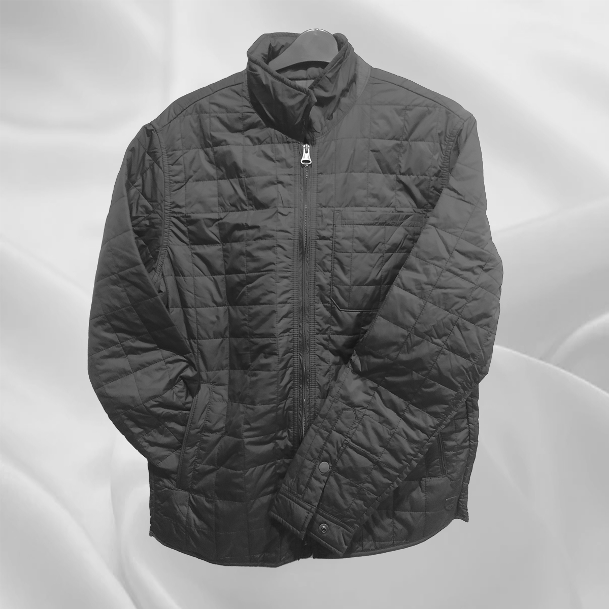 Black solid jacket has a hood, 2 pockets, zip closure, long sleeves, straight hem, and polyester.